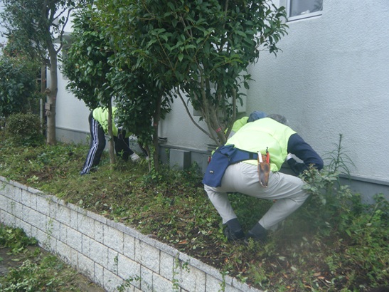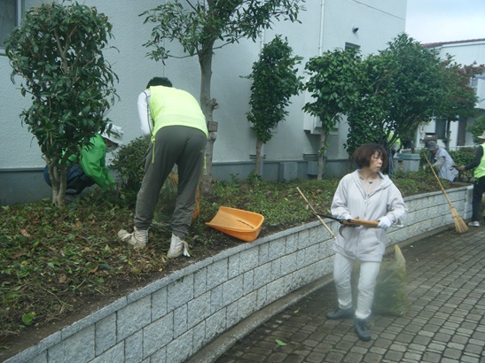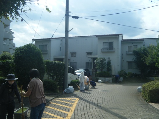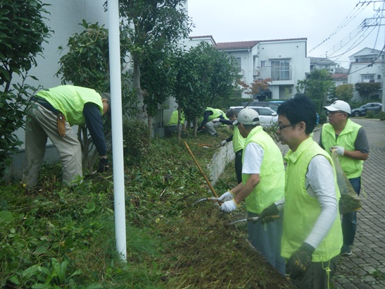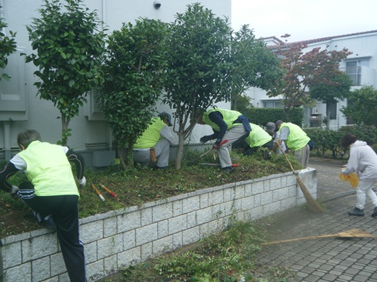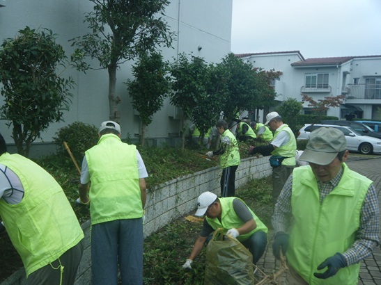 @理事会主催のクリーンデーA住民参加の団地内清掃B緑化委員前日除草作業実施