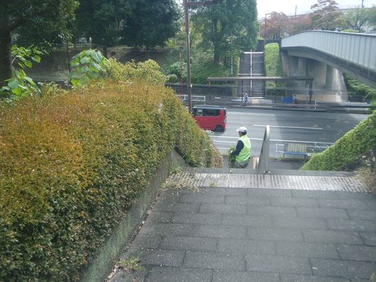 @6号棟通路脇石垣上の人力除草Aその他 共有地の刈り払い
